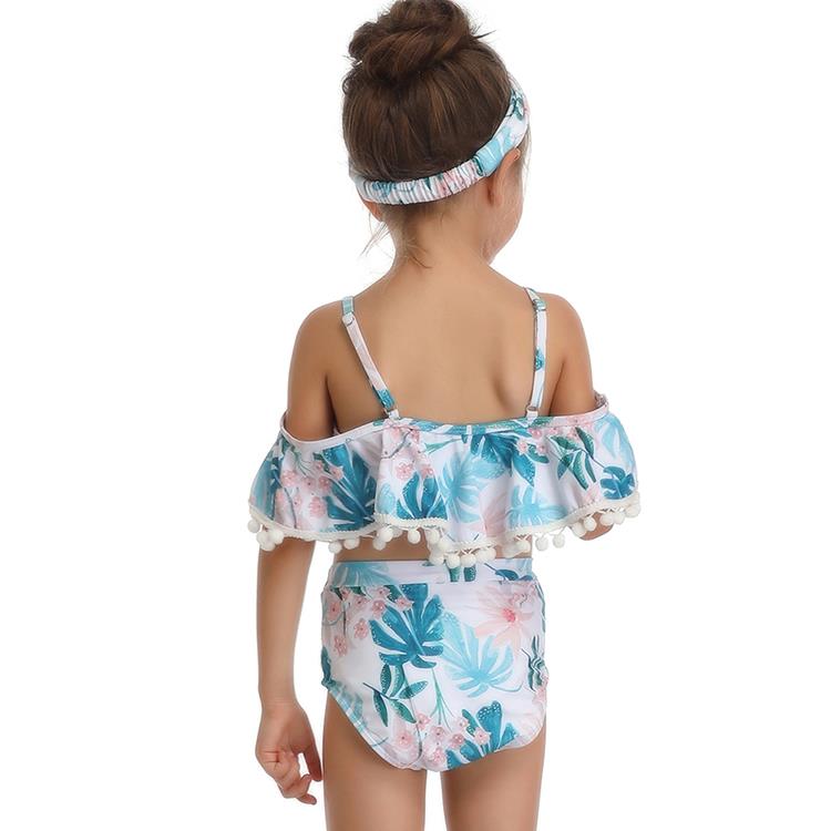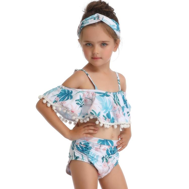 New Fashion Sling Ruffle Two Piece High Waist Kids Swim Wear Bikini Children Swimwear